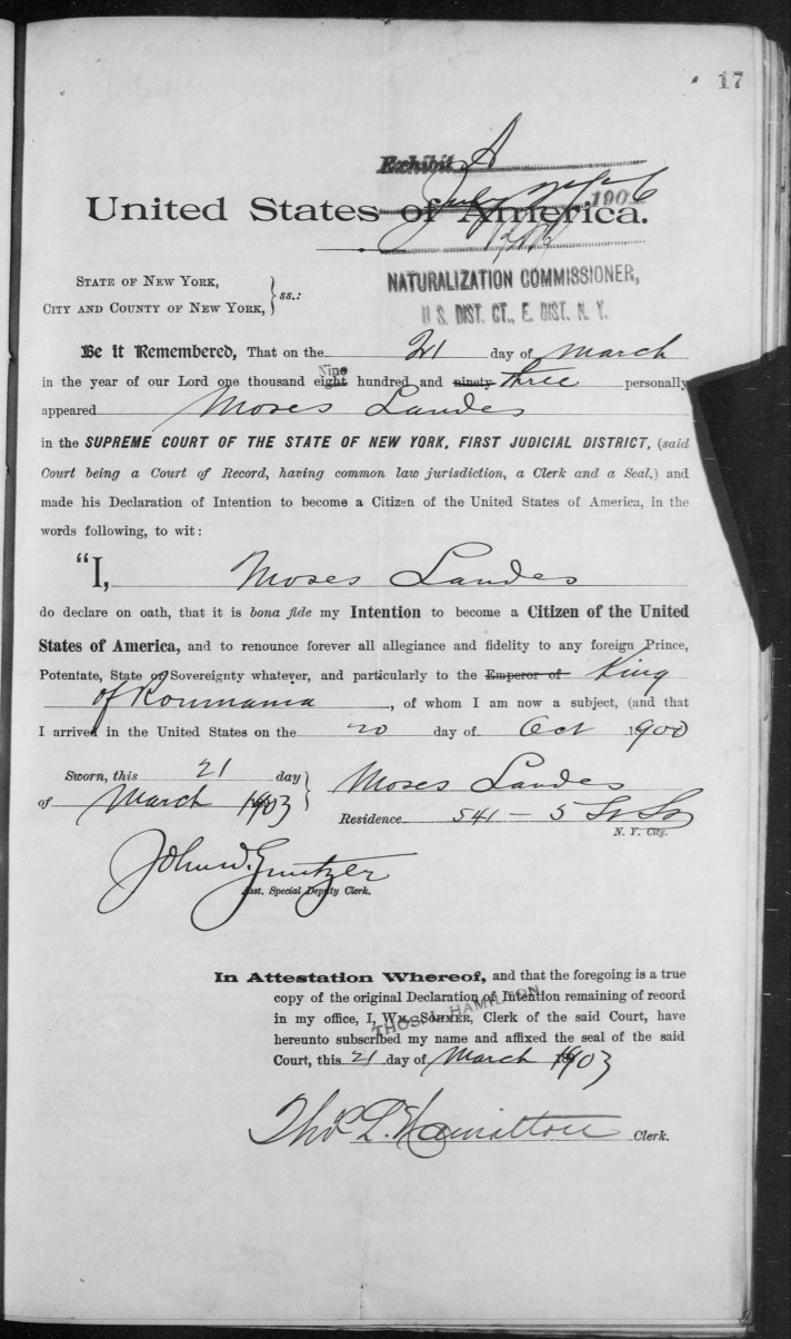 Naturalization: Moses Landes
